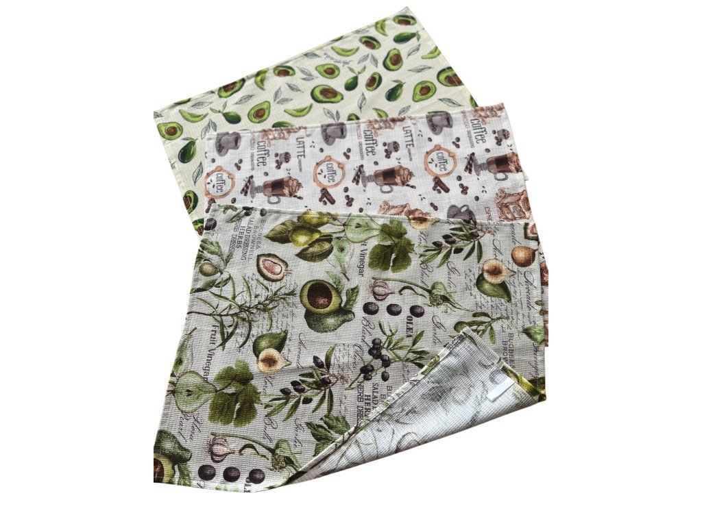 Sada 3 ks vaflových utěrek - Avokáda a káva