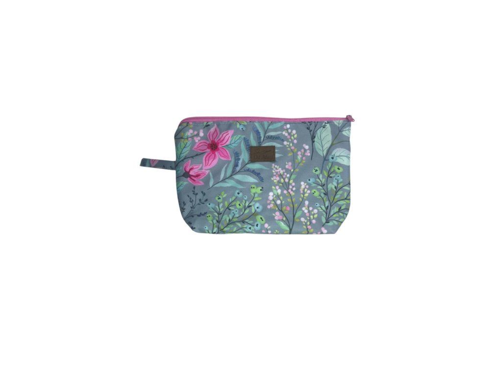 Kosmetické taštičky na zip s praktickým poutkem pro snadné přenášení jsou vypodšívkované jednobarevnou kočárkovinou pro snadnou údržbu.