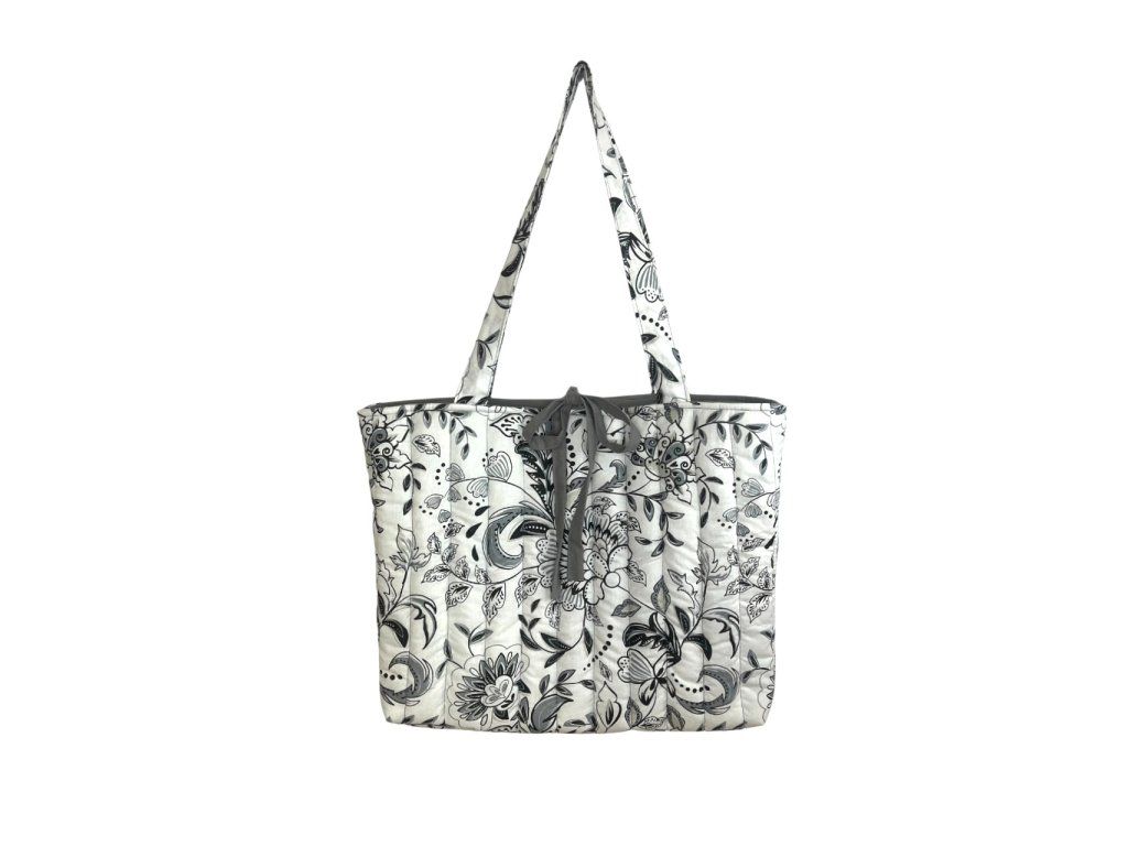 Moje prošívaná taška je útulná a stylová, která kombinuje každodenní pohodlí s klasickým designem. Prošívaný vnější povrch se pyšní krásným vždy jedinečným dekorem, který doplňuje elegantně sladěný jednobarevný vnitřek s kapsou v dekorativním vzoru lícní strany se zavazováním na mašli pro extra eleganci. Tato taška je ideální pro nošení knih, potravin, oblečení do posilovny nebo pro přenášení plážového vybavení. Je nezbytností pro každého, kdo si cení všestrannosti.
