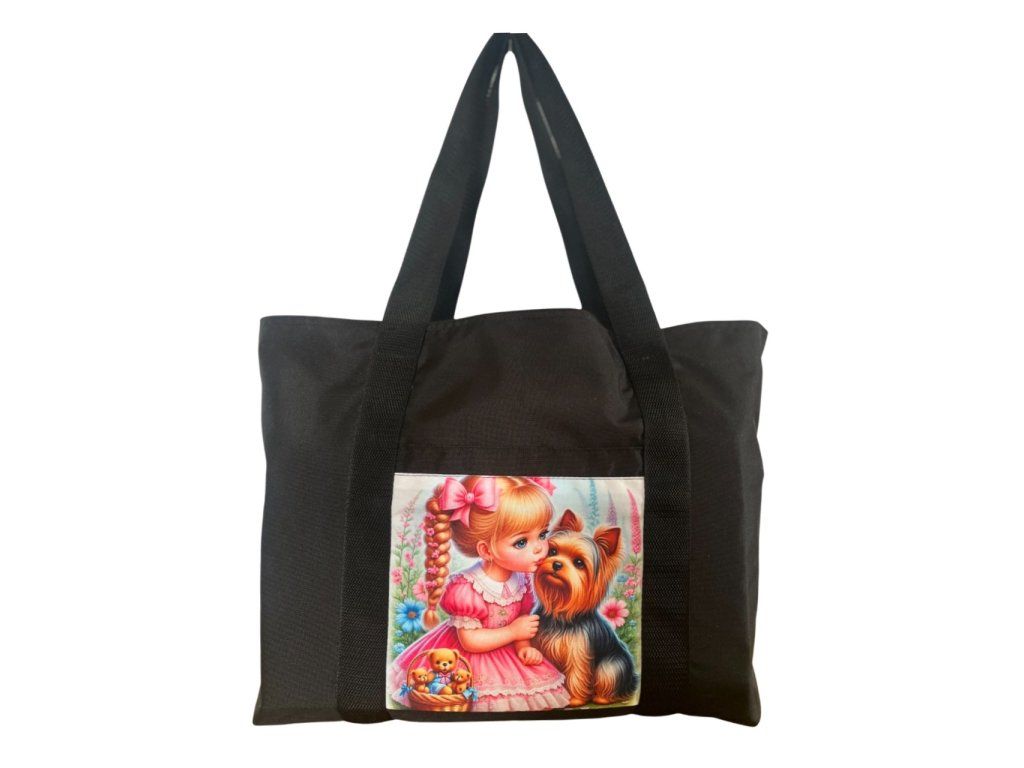 Větší taška z kočárkoviny - Děvčátko a jorkšírek